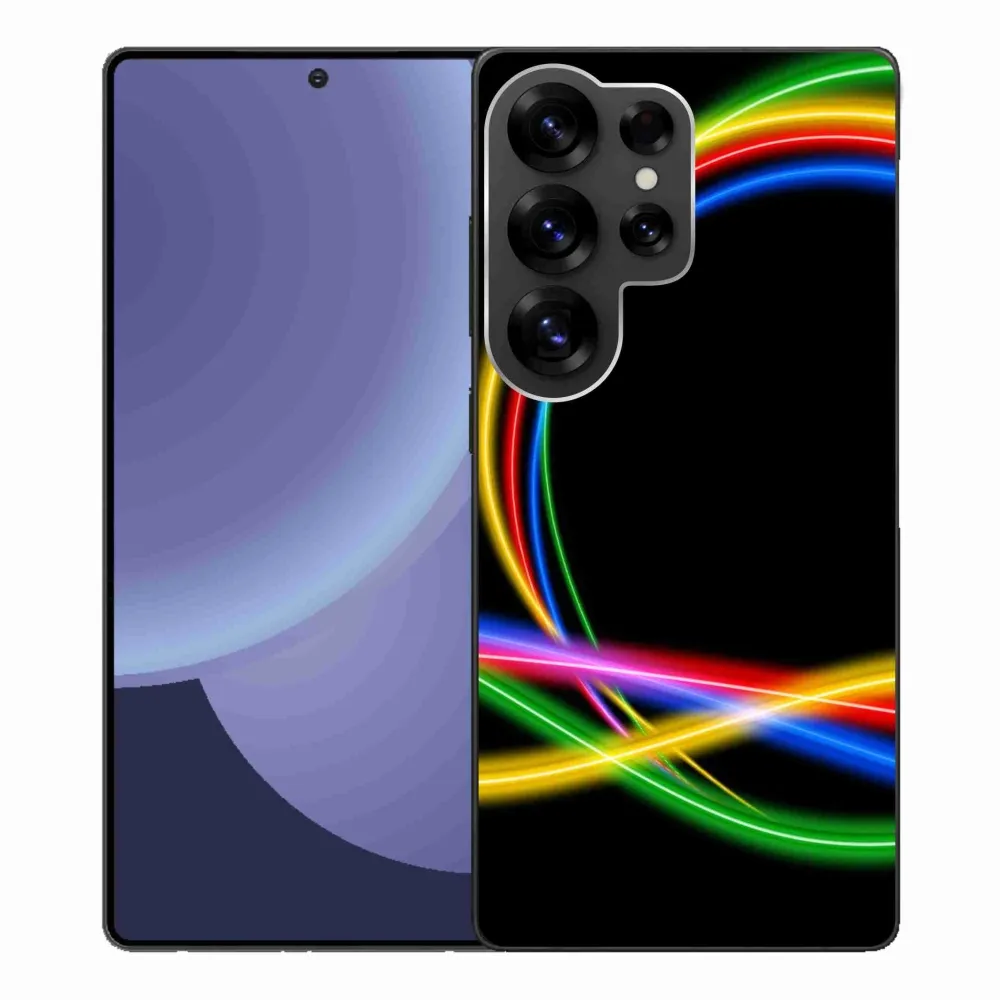 Abstraktní pouzdro na Samsung Galaxy S25 Ultra - neonové kruhy poskytuje všechny výhody gelových krytů, a to v zajímavém designu.
