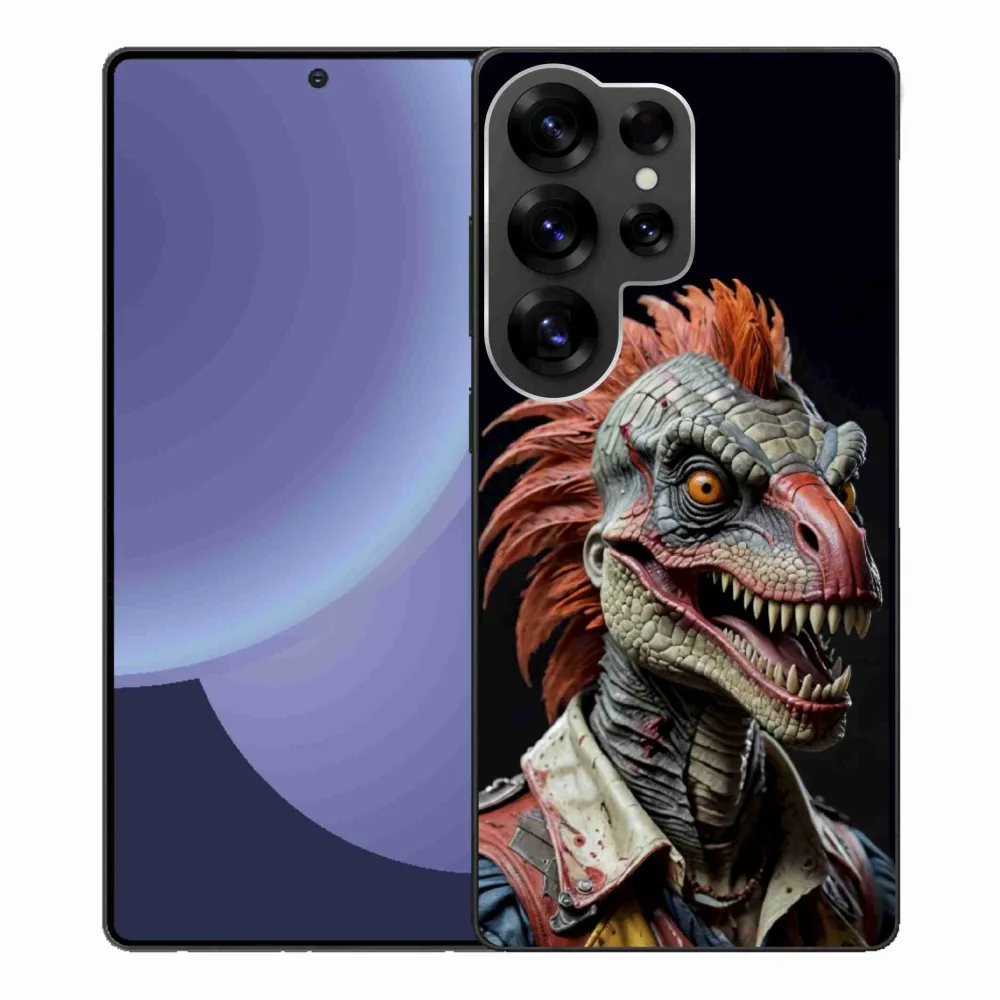 Pouzdro s motivem punk dinosaura na Samsung Galaxy S25 Ultra poskytuje všechny výhody gelových obalů, a to v zajímavém designu.