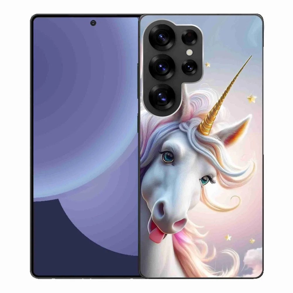 Pouzdro s motivem jednorožce na Samsung Galaxy S25 Ultra - veselý jednorožec poskytuje všechny výhody gelových krytů, a to v zajímavém designu.