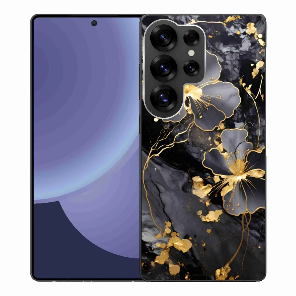 Pružný gelový obal mmCase s obrázkem na Samsung Galaxy S25 Ultra - zlaté květy