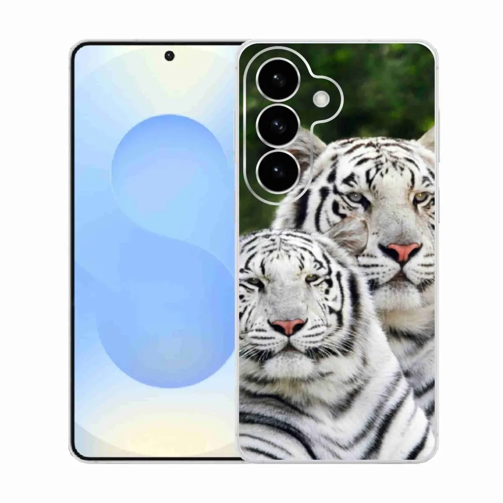 Pouzdro se šelmou na Samsung Galaxy S26 - bílí tygři poskytuje všechny výhody gelových krytů, a to v zajímavém designu.