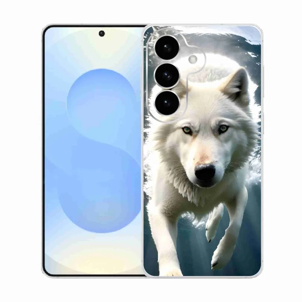 Pružný gelový obal mmCase s obrázkem na Samsung Galaxy S26 - bílý vlk