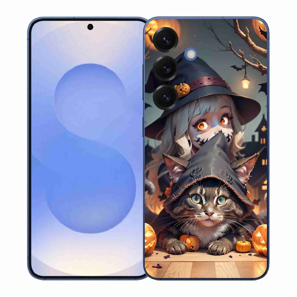 Pružný gelový obal mmCase s obrázkem na Samsung Galaxy S26+ - čarodějnice s kočkou