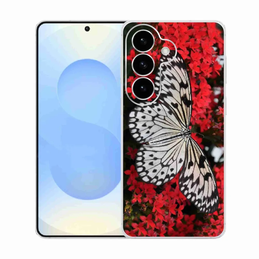 Pružný gelový obal mmCase s obrázkem na Samsung Galaxy S26 - černobílý motýl 1