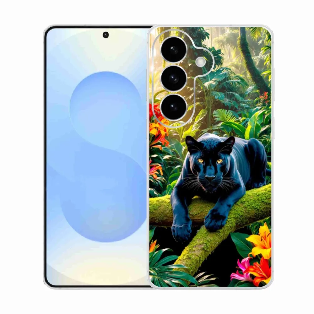Zvířecí pouzdro na Samsung Galaxy S26 - černý panter v džungli poskytuje všechny výhody gelových obalů, a to v zajímavém designu.