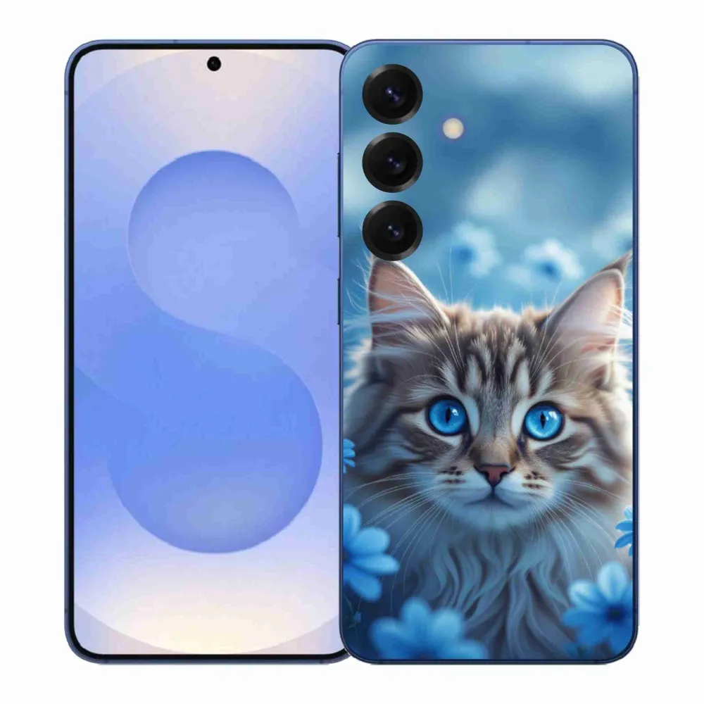 Pružný glový obal mmCase s obrázkem na Samsung Galaxy S26+ - koťátko v modrých květech