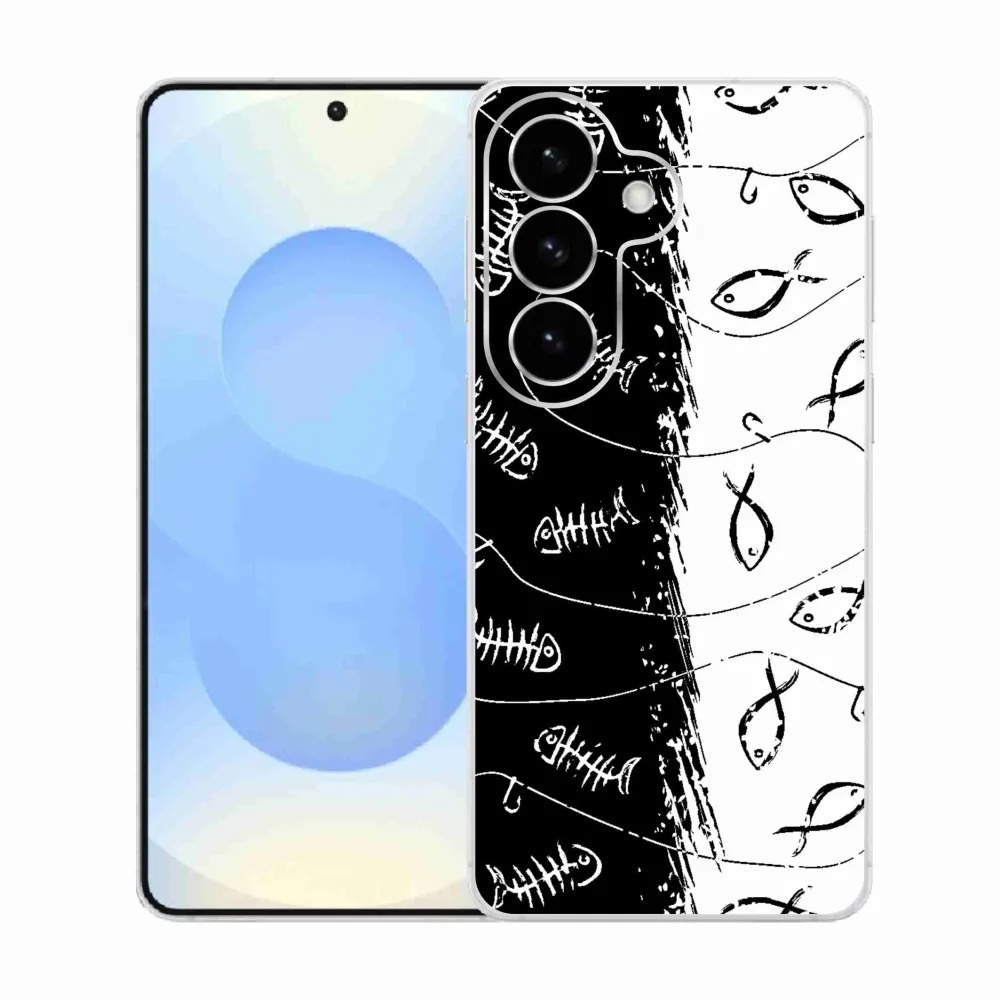 Pouzdro pro rybáře na Samsung Galaxy S26 - kostry a rybky poskytuje všechny výhody gelových krytů, a to v zajímavém designu.