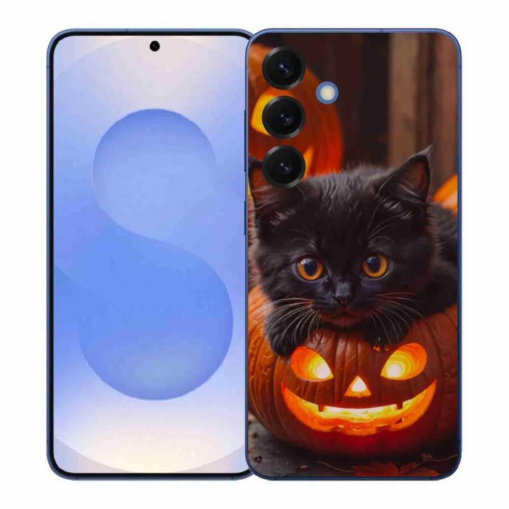 Pružný gelový obal mmCase s obrázkem na Samsung Galaxy S26+ - kotě a dýně