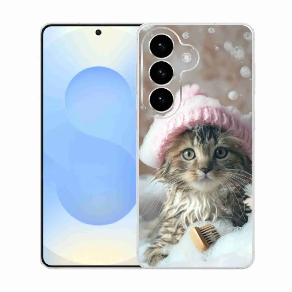 Pružný gelový obal mmCase s obrázkem na Samsung Galaxy S26 - kotě a koupel