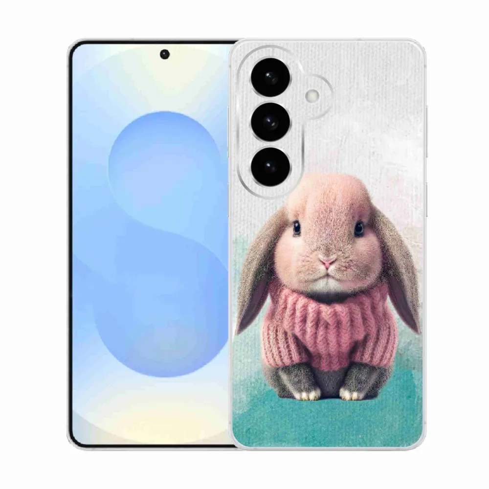 Zvířecí pouzdro na Samsung Galaxy S26 - králíček ve svetru poskytuje všechny výhody gelových obalů, a to v zajímavém designu.