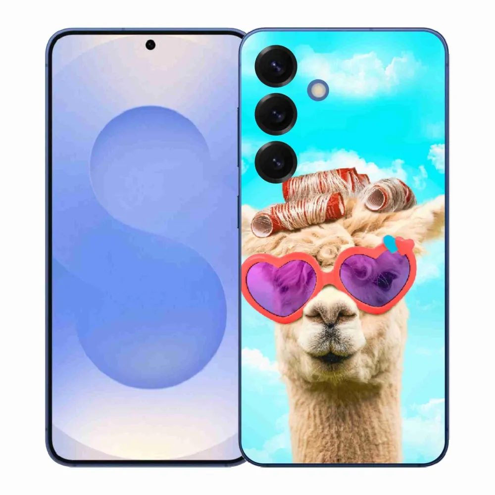 Zvířecí pouzdro na Samsung Galaxy S26+ - lama s brýlemi poskytuje všechny výhody gelových obalů, a to v zajímavém designu.