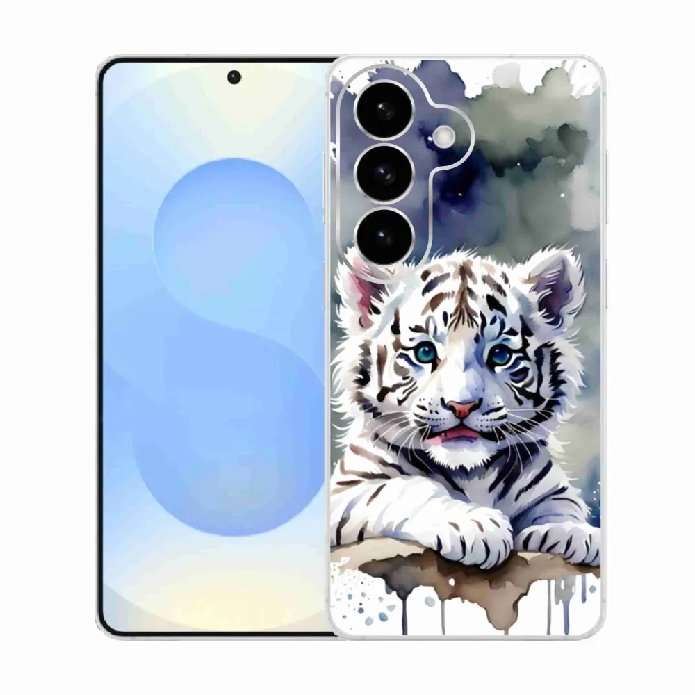 Pružný gelový obal mmCase s obrázkem na Samsung Galaxy S26 - mládě bílého tygra