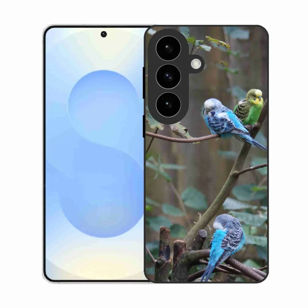Ptačí pouzdro na Samsung Galaxy S26 - papoušci na větvi poskytuje všechny výhody gelových obalů, a to v zajímavém designu.