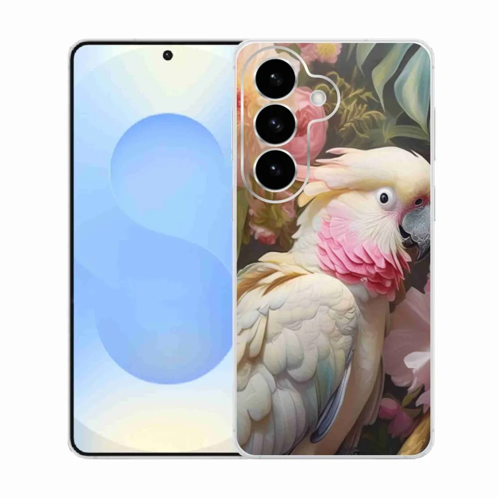 Pružný gelový obal mmCase s obrázkem na Samsung Galaxy S26 - papoušek kakadu růžový 2