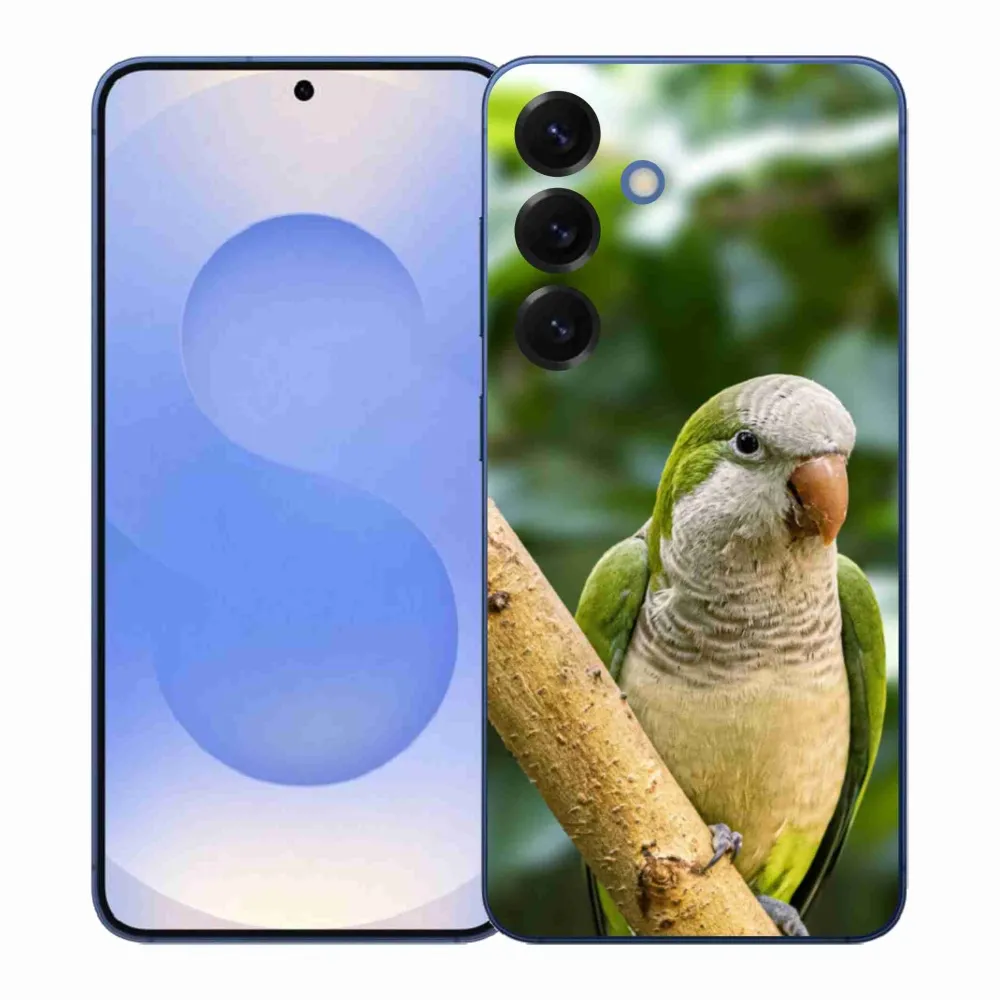 Ptačí pouzdro na Samsung Galaxy S26+ - papoušek mníšek poskytuje všechny výhody gelových obalů, a to v zajímavém designu.