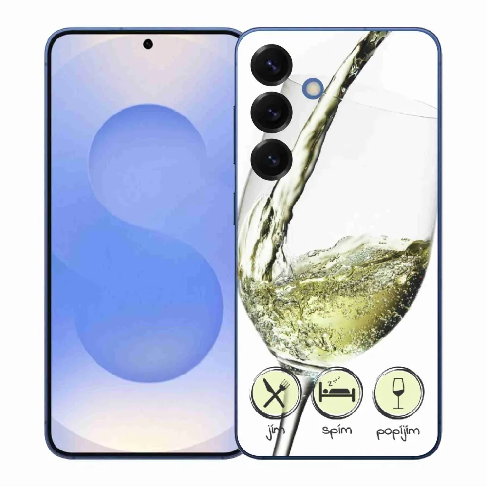 Pouzdro s motivem na Samsung Galaxy S26+ - sklenička vína bílé poskytuje všechny výhody gelových obalů, a to v zajímavém designu.