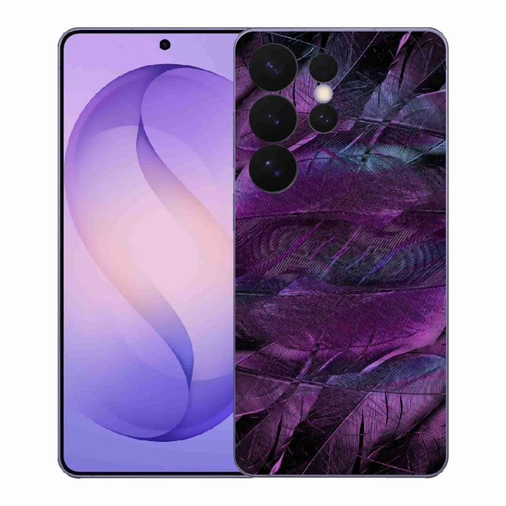 Pružný gelový obal mmCase s obrázkem na Samsung Galaxy S26 Ultra - fialová pírka