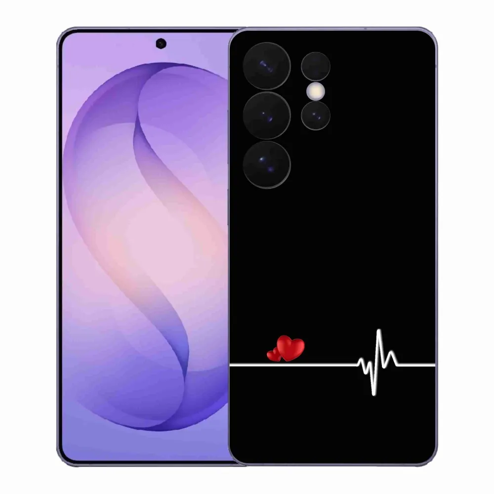 Pouzdro s motivem lásky na Samsung Galaxy S26 Ultra - srdce a tep černé pozadí poskytuje všechny výhody gelových obalů, a to v zajímavém designu.