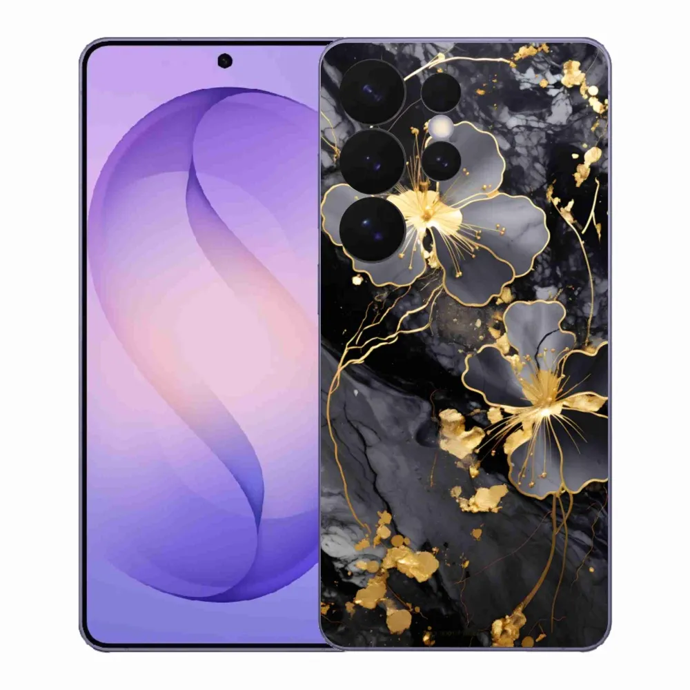 Pružný gelový obal mmCase s obrázkem na Samsung Galaxy S26 Ultra - zlaté květy