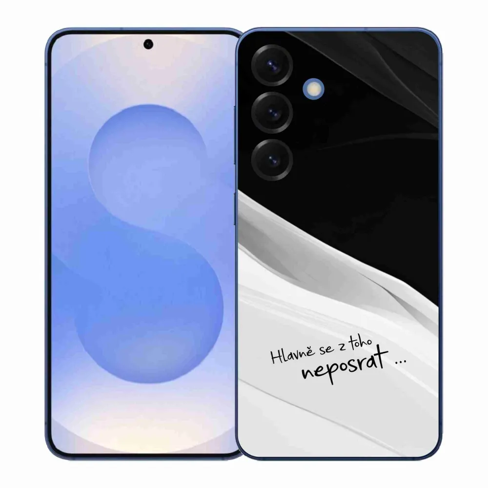 Pružný gelový obal mmCase s obrázkem na Samsung Galaxy S26+ - vtipný text 13 bíločerné pozadí