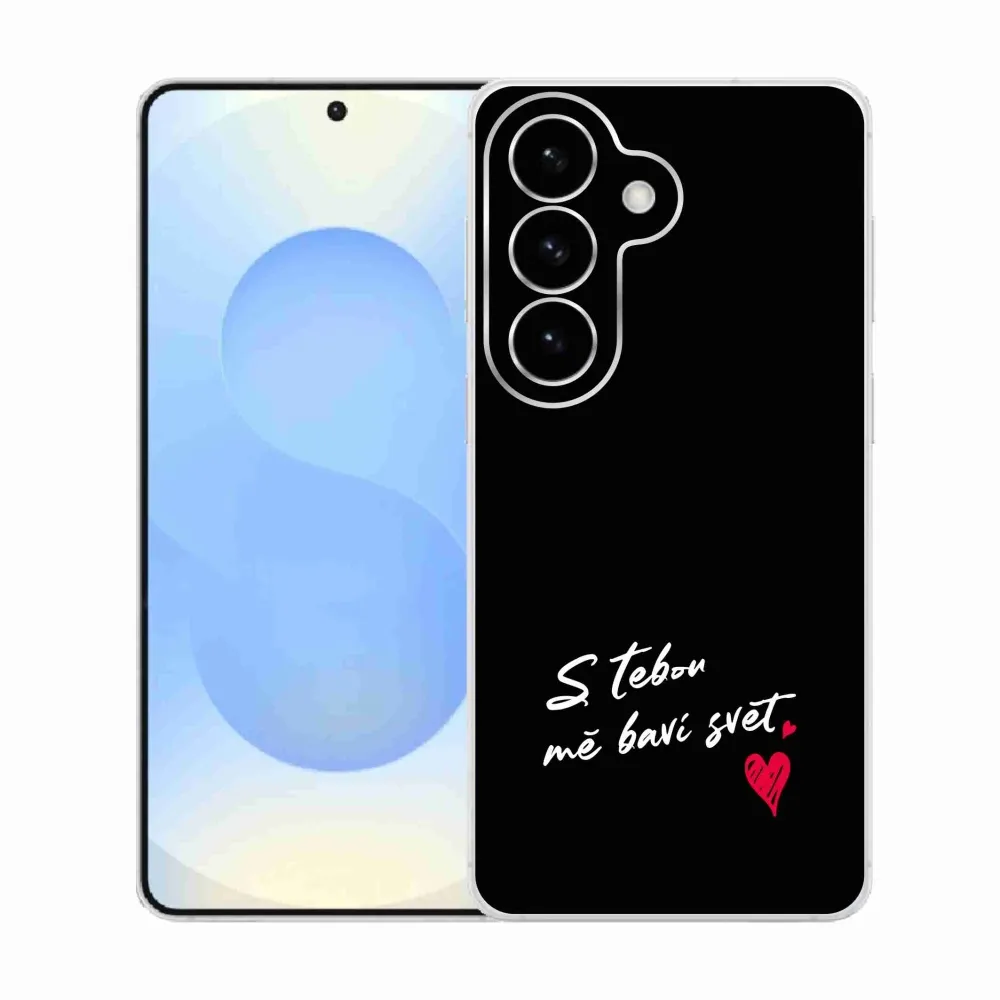 Pružný gelový obal mmCase s obrázkem na Samsung Galaxy S26 - zamilovaný text 1 černé pozadí