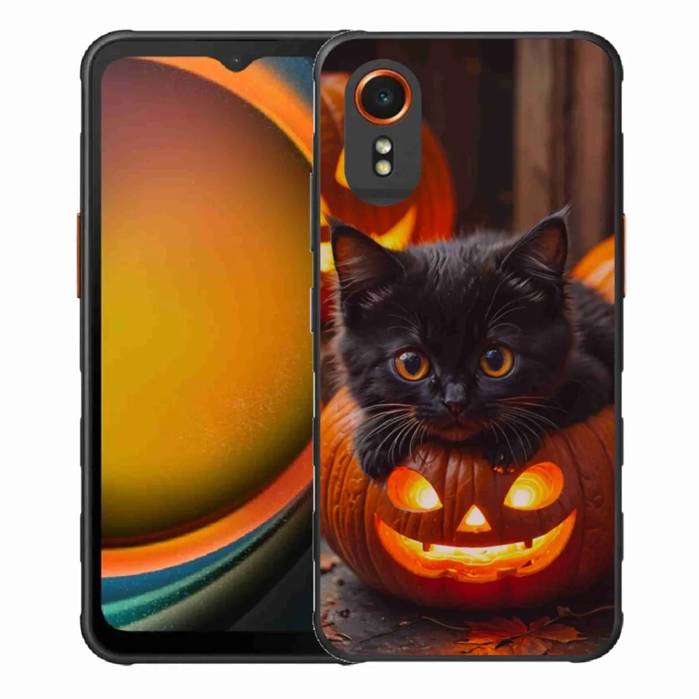 Kočičí pouzdro na Samsung Galaxy Xcover 7 - kotě a dýně poskytuje všechny výhody gelových obalů, a to v zajímavém designu.