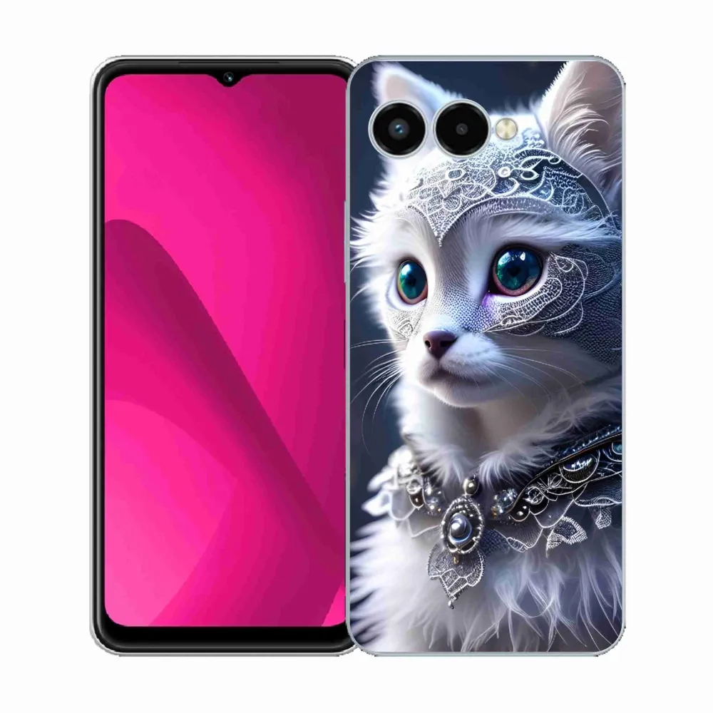 Kočičí pouzdro na T-Mobile T Phone 3 - bílá kočka poskytuje všechny výhody gelových krytů, a to v zajímavém designu.