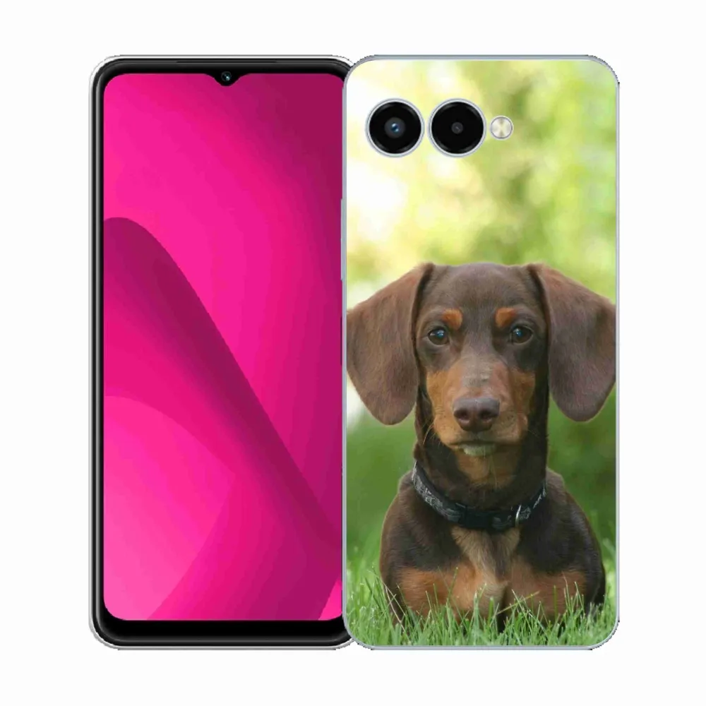 Psí pouzdro na T-Mobile T Phone 3 - hnědý jezevčík poskytuje všechny výhody gelových krytů, a to v zajímavém designu.