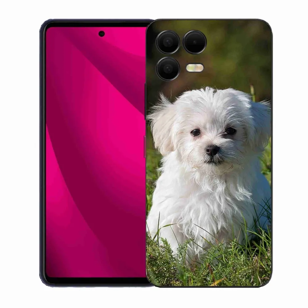 Psí pouzdro na T-Mobile T Phone 3 Pro - bišonek poskytuje všechny výhody gelových krytů, a to v zajímavém designu.