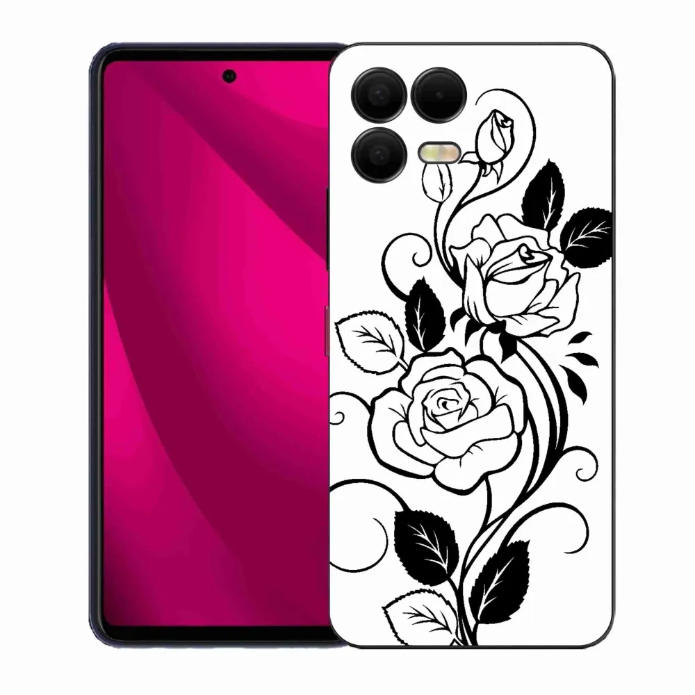Květinové pouzdro na T-Mobile T Phone 3 Pro - černobílá růže poskytuje všechny výhody gelových obalů, a to v zajímavém designu.