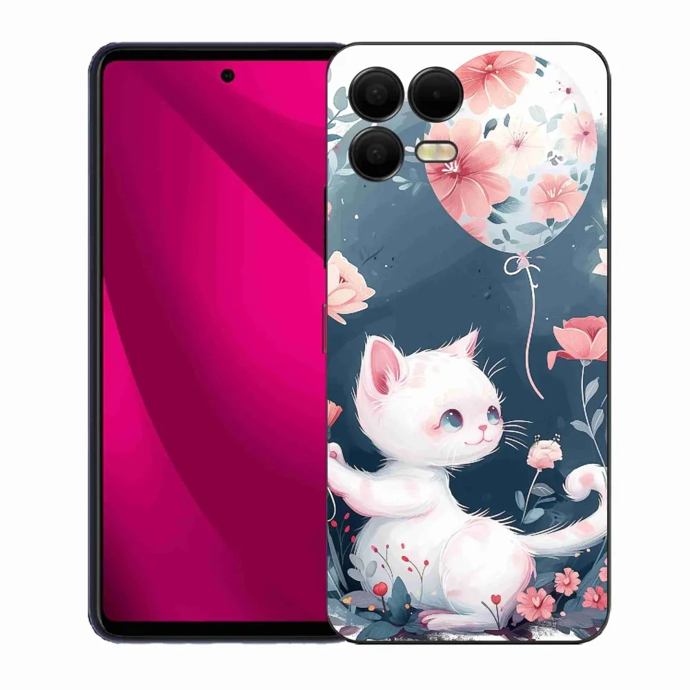 Kočičí pouzdro na T-Mobile T Phone 3 Pro - kotě s balónkem poskytuje všechny výhody gelových krytů, a to v zajímavém designu.