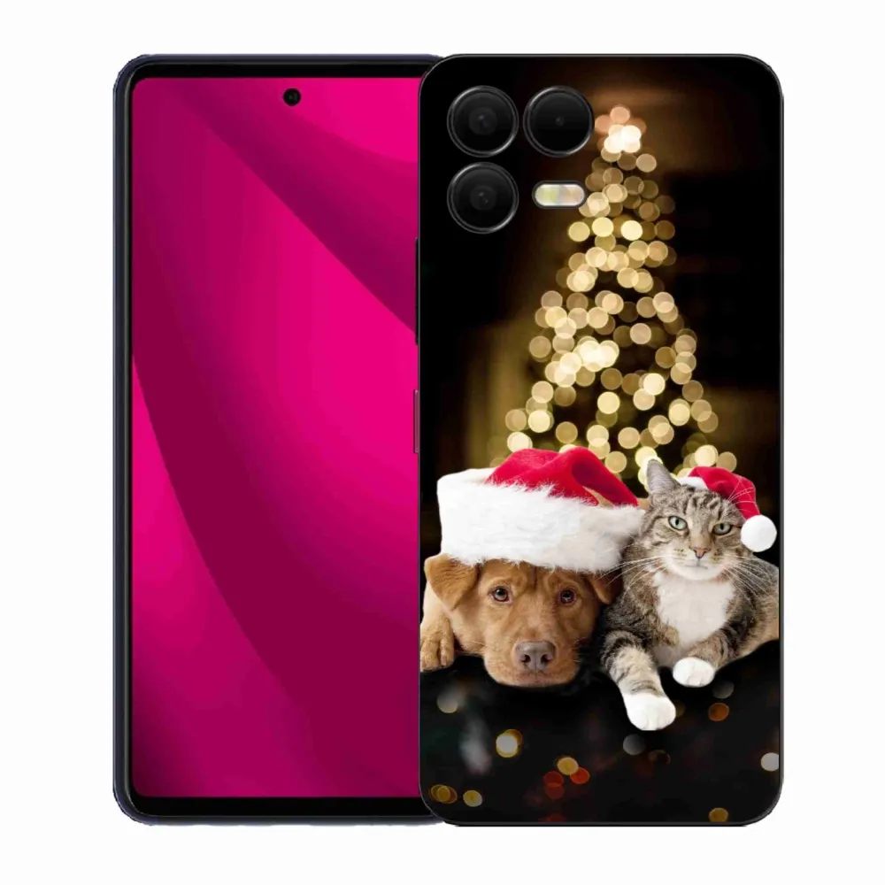 Vánoční pouzdro na T-Mobile T Phone 3 Pro - vánoční pes a kočka poskytuje všechny výhody gelových obalů, a to v zajímavém designu.