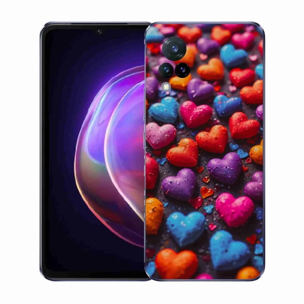 Pouzdro na Vivo V21 4G/5G - barevná srdce poskytuje všechny výhody gelových obalů, a to v zajímavém designu.