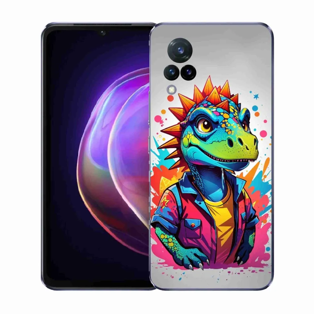 Zvířecí pouzdro na Vivo V21 4G/5G - barevný dinosaurus poskytuje všechny výhody gelových obalů, a to v zajímavém designu.