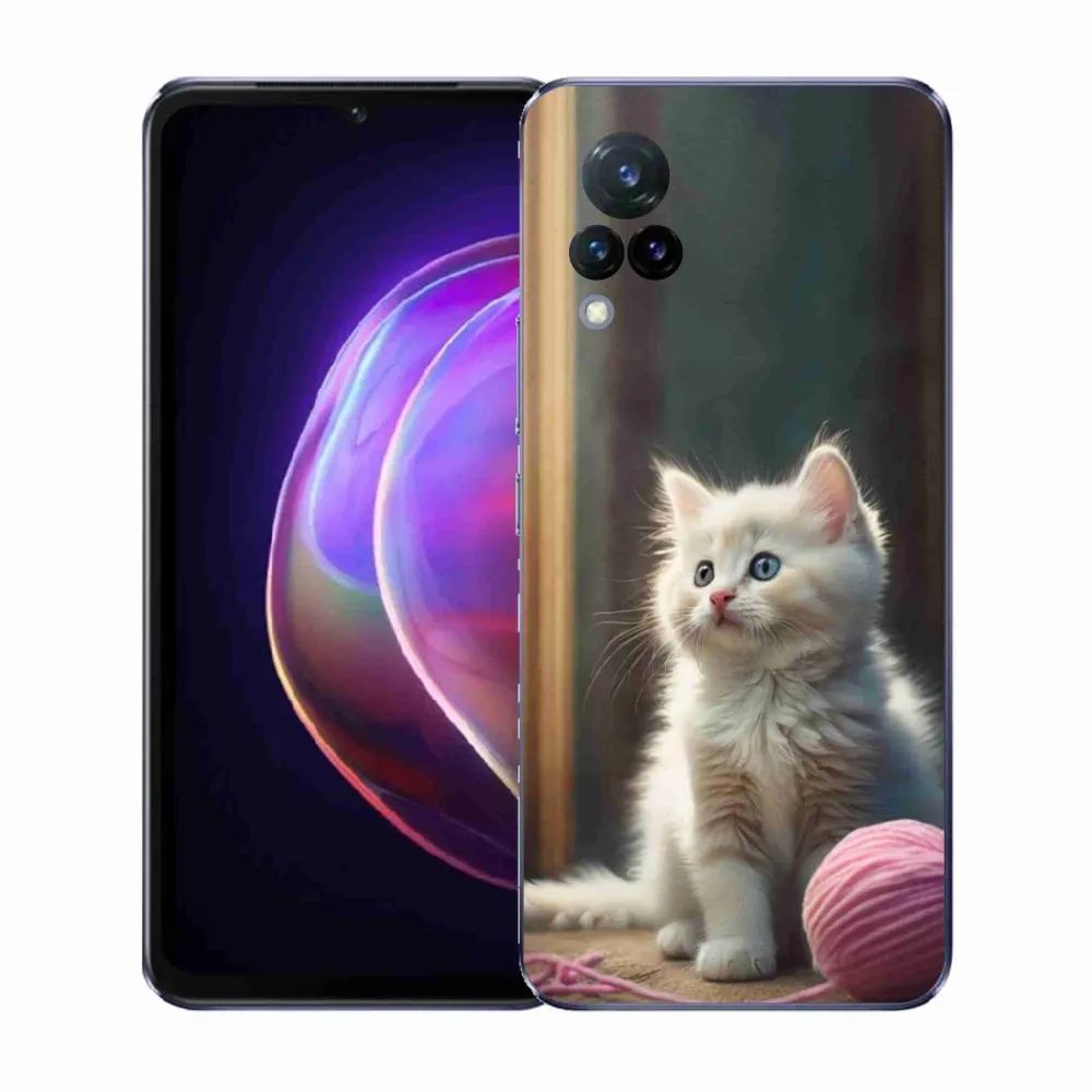 Kočičí pouzdro na Vivo V21 4G/5G - bílé kotě 2 poskytuje všechny výhody gelových obalů, a to v zajímavém designu.