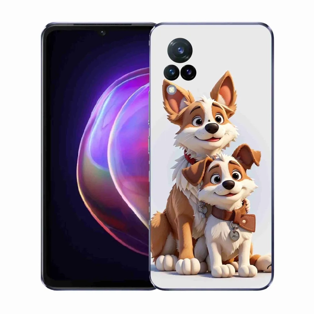 Psí pouzdro na Vivo V21 4G/5G - kreslení psi poskytuje všechny výhody gelových obalů, a to v zajímavém designu.