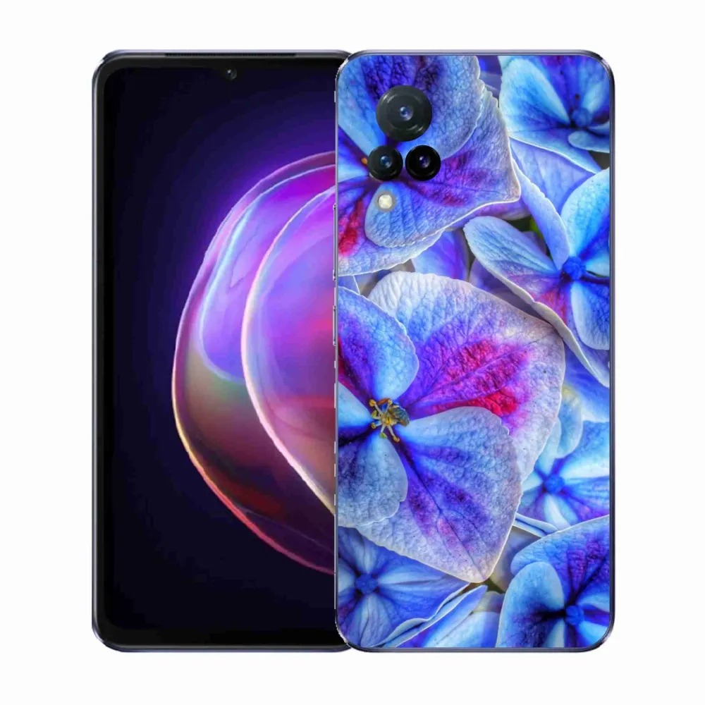 Pružný gelový obal mmCase s obrázkem na Vivo V21 4G/5G - modré květy 1