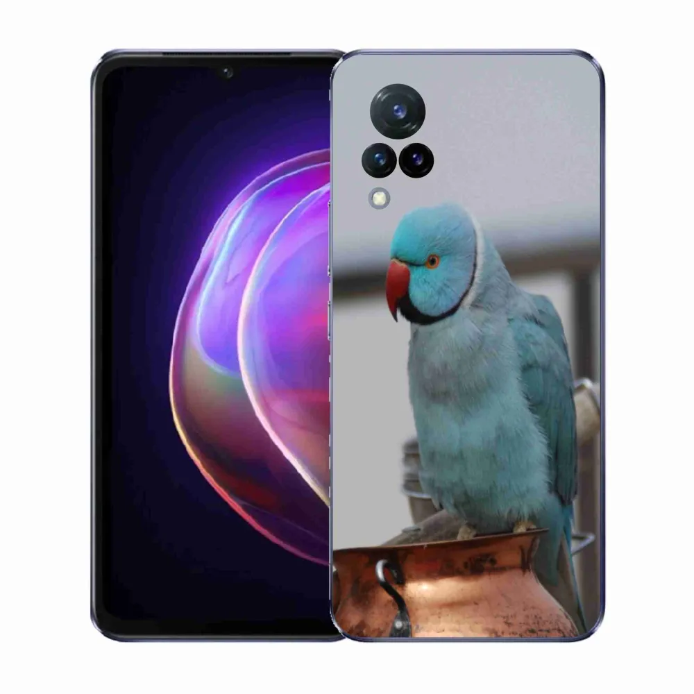 Ptačí pouzdro na Vivo V21 4G/5G - papoušek alexandr modrý poskytuje všechny výhody gelových obalů, a to v zajímavém designu.