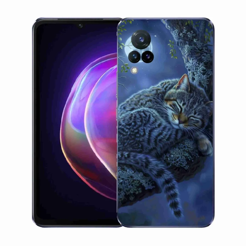 Kočičí pouzdro na Vivo V21 4G/5G - spící kočka poskytuje všechny výhody gelových obalů, a to v zajímavém designu.