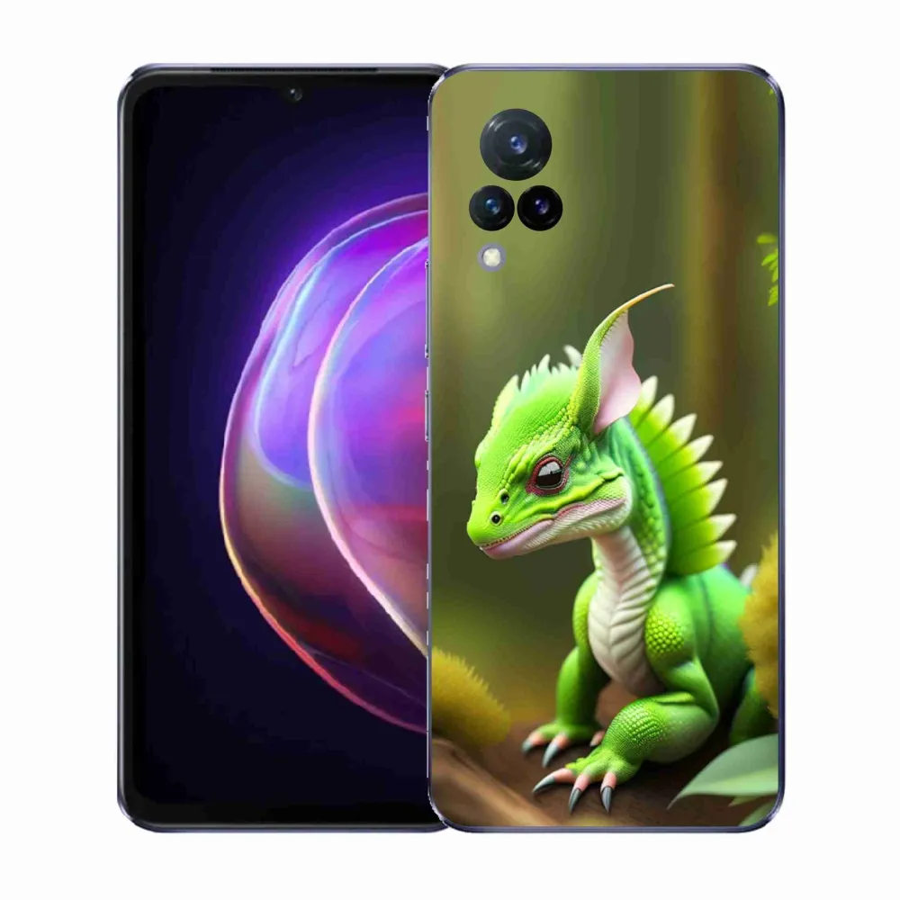 Zvířecí pouzdro na Vivo V21 4G/5G - zelený dráček poskytuje všechny výhody gelových obalů, a to v zajímavém designu.