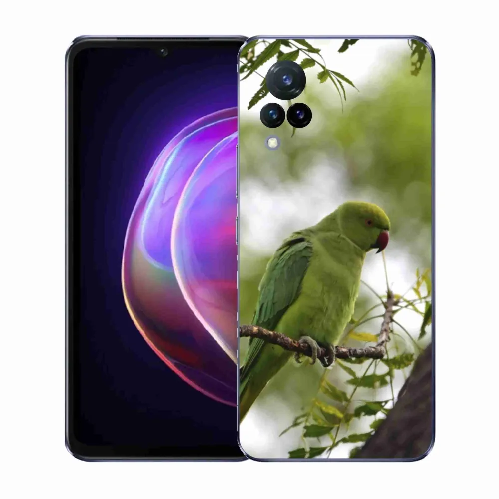 Ptačí pouzdro na Vivo V21 4G/5G - zelený papoušek poskytuje všechny výhody gelových obalů, a to v zajímavém designu.