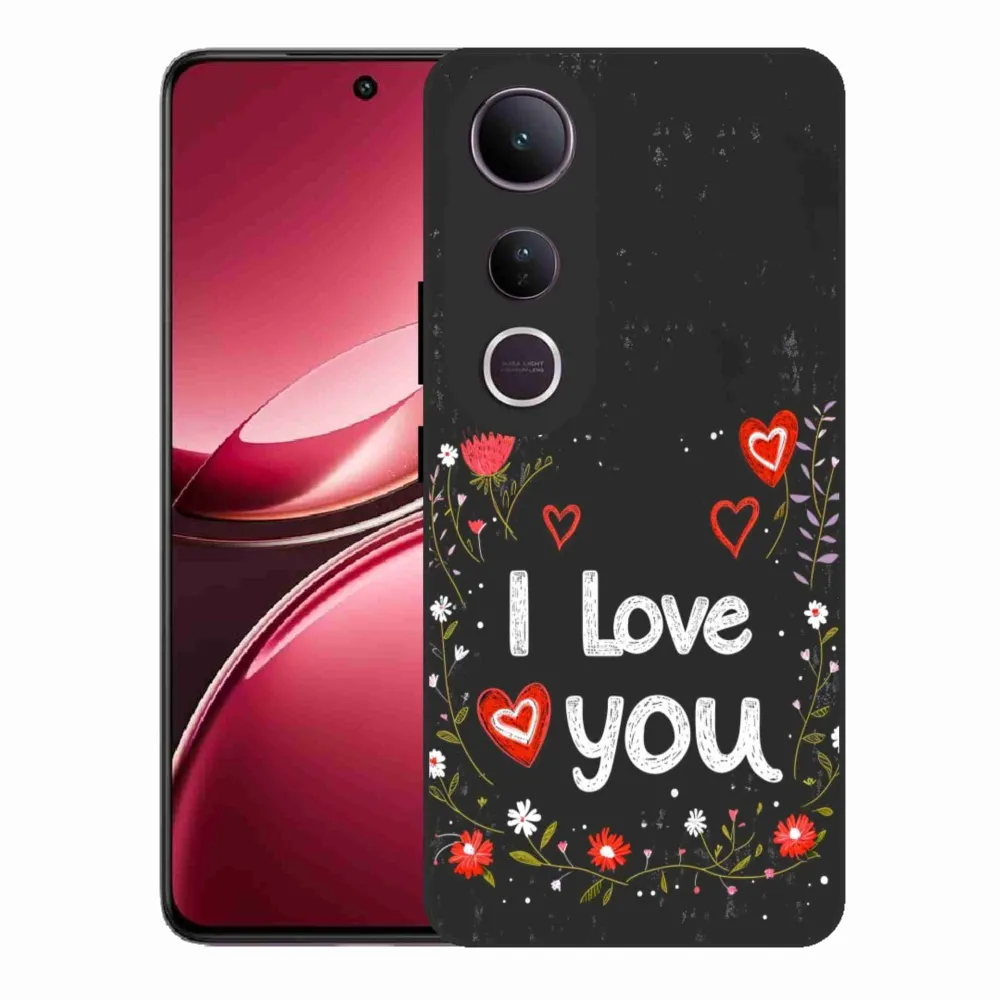 Pružný gelový obal mmCase s obrázkem na Vivo V50 Lite 4G/5G - I love you černé pozadí