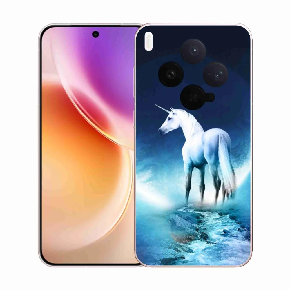 Pružný gelový obal mmCase s obrázkem na Vivo X300 - bílý jednorožec