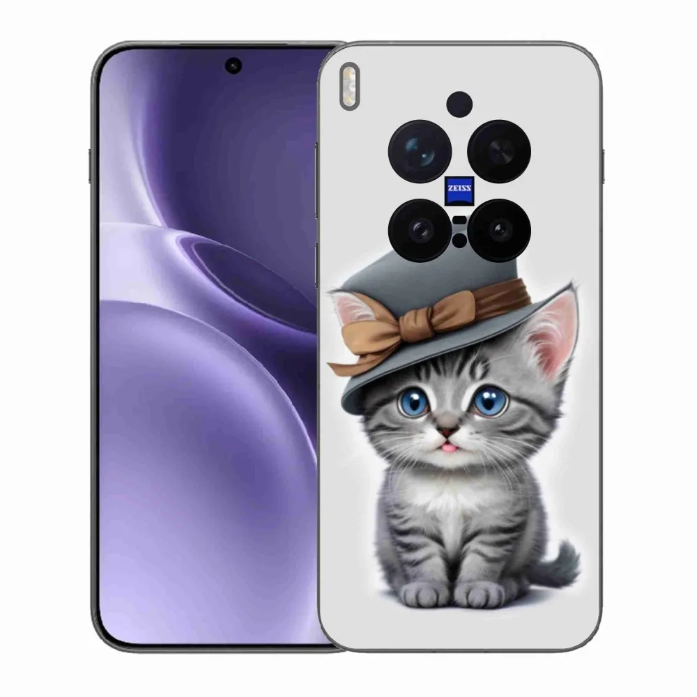 Pružný gelový obal mmCase s obrázkem na Vivo X300 Pro 5G - kotě s kloboukem