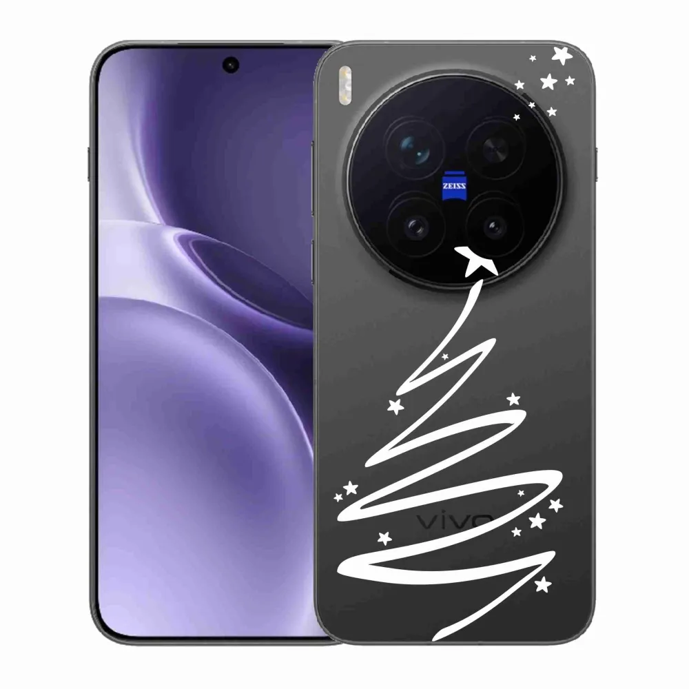 Vánoční pouzdro na Vivo X300 Pro - bílý stromeček (pozadí krytu je průhledné) poskytuje všechny výhody gelových krytů, a to v zajímavém designu.