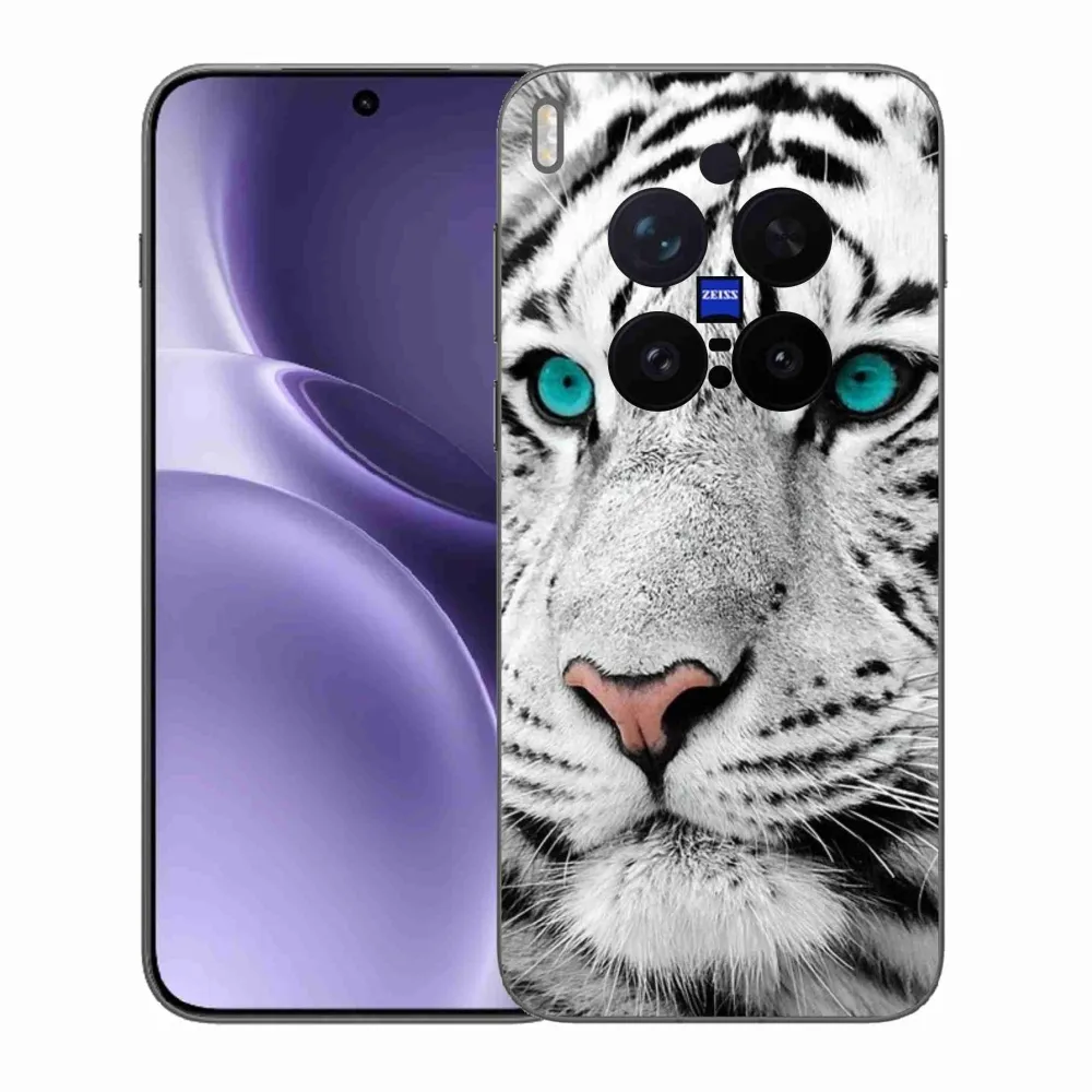 Pouzdro se šelmou na Vivo X300 Pro - bílý tygr poskytuje všechny výhody gelových krytů, a to v zajímavém designu.