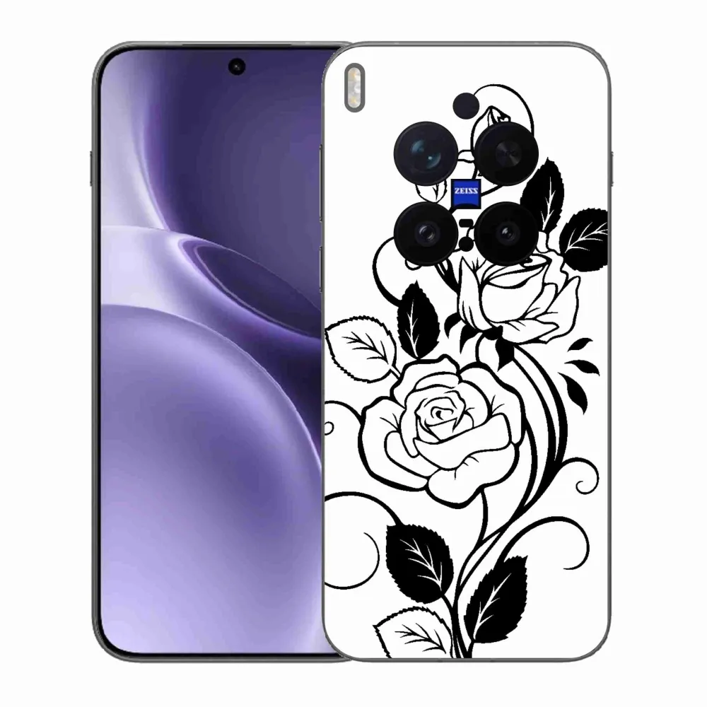 Pružný gelový obal mmCase s obrázkem na Vivo X300 Pro - černobílá růže