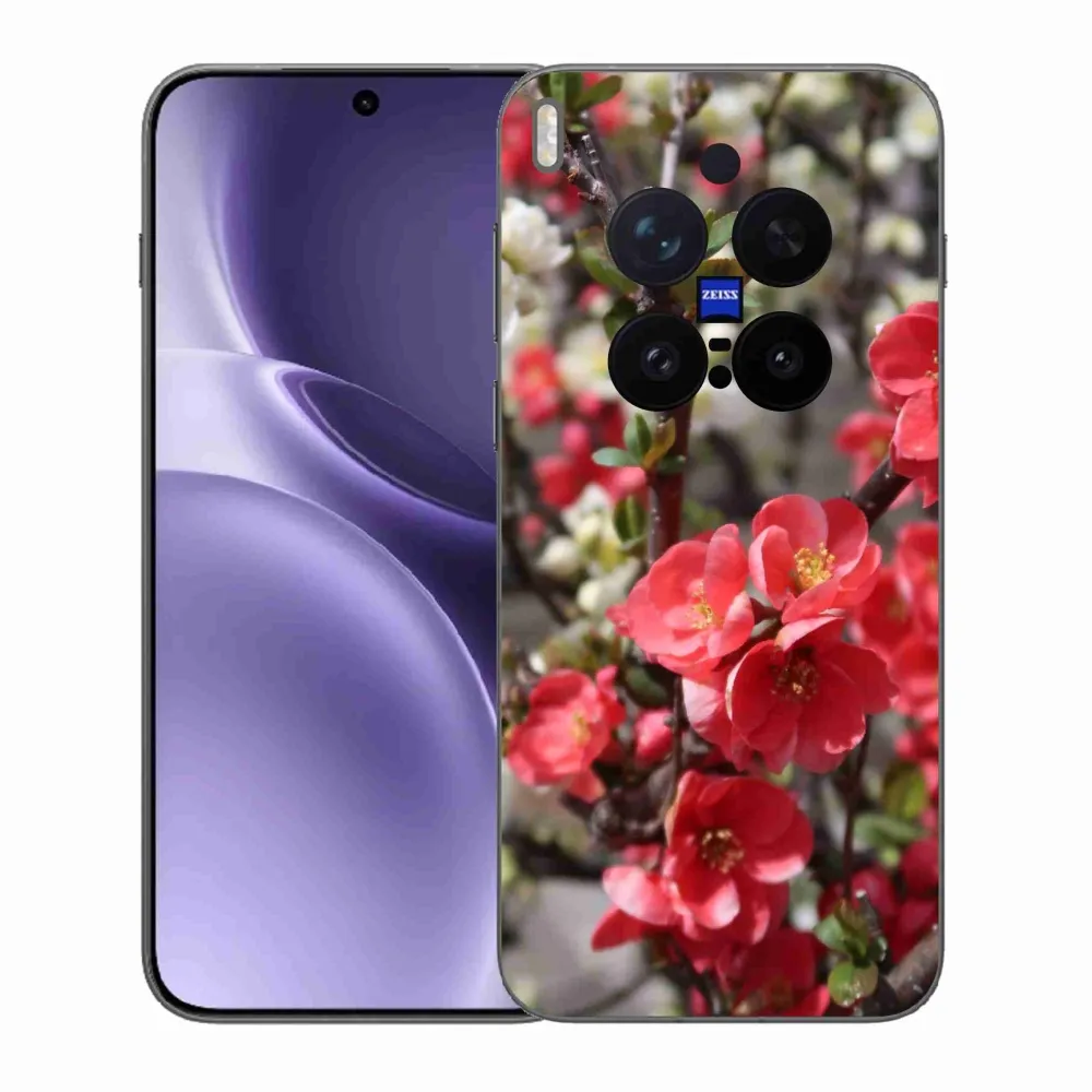Pružný gelový obal mmCase s obrázkem na Vivo X300 Pro - červené květy