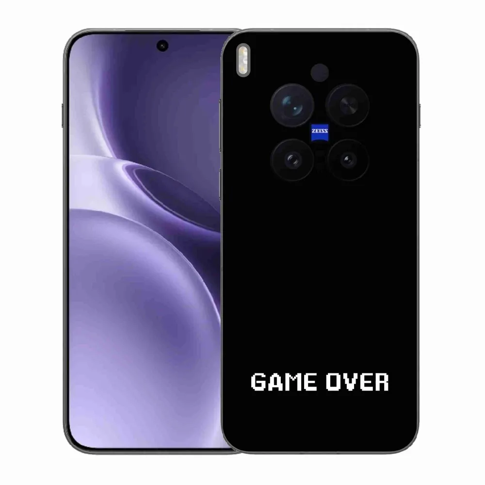 Pouzdro, na kterém je zajímavý text má název - game over černé pozadí a je na Vivo X300 Pro poskytuje všechny výhody gelových krytů, a to v zajímavém designu.