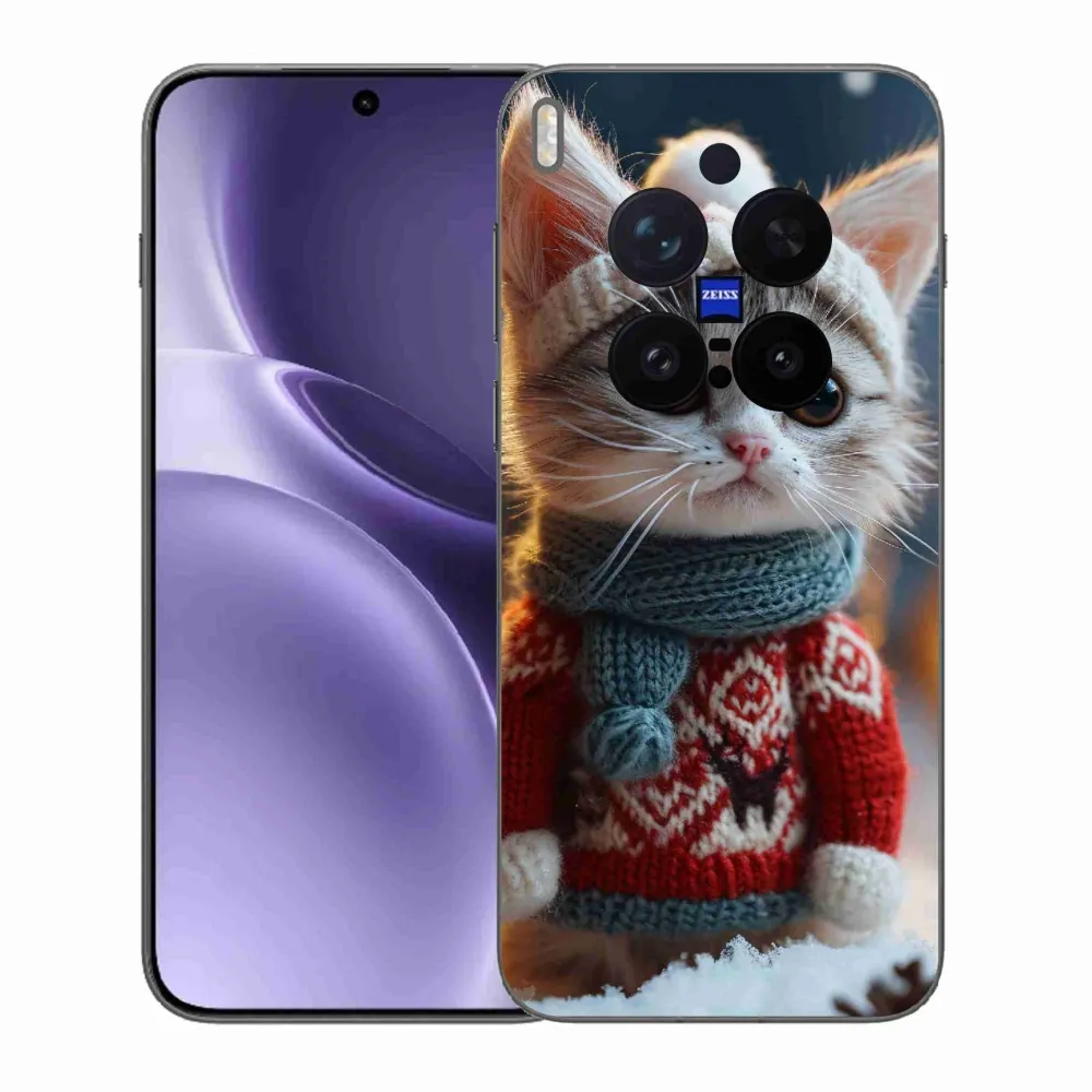 Pružný gelový obal mmCase s obrázkem na Vivo X300 Pro - kotě ve svetru
